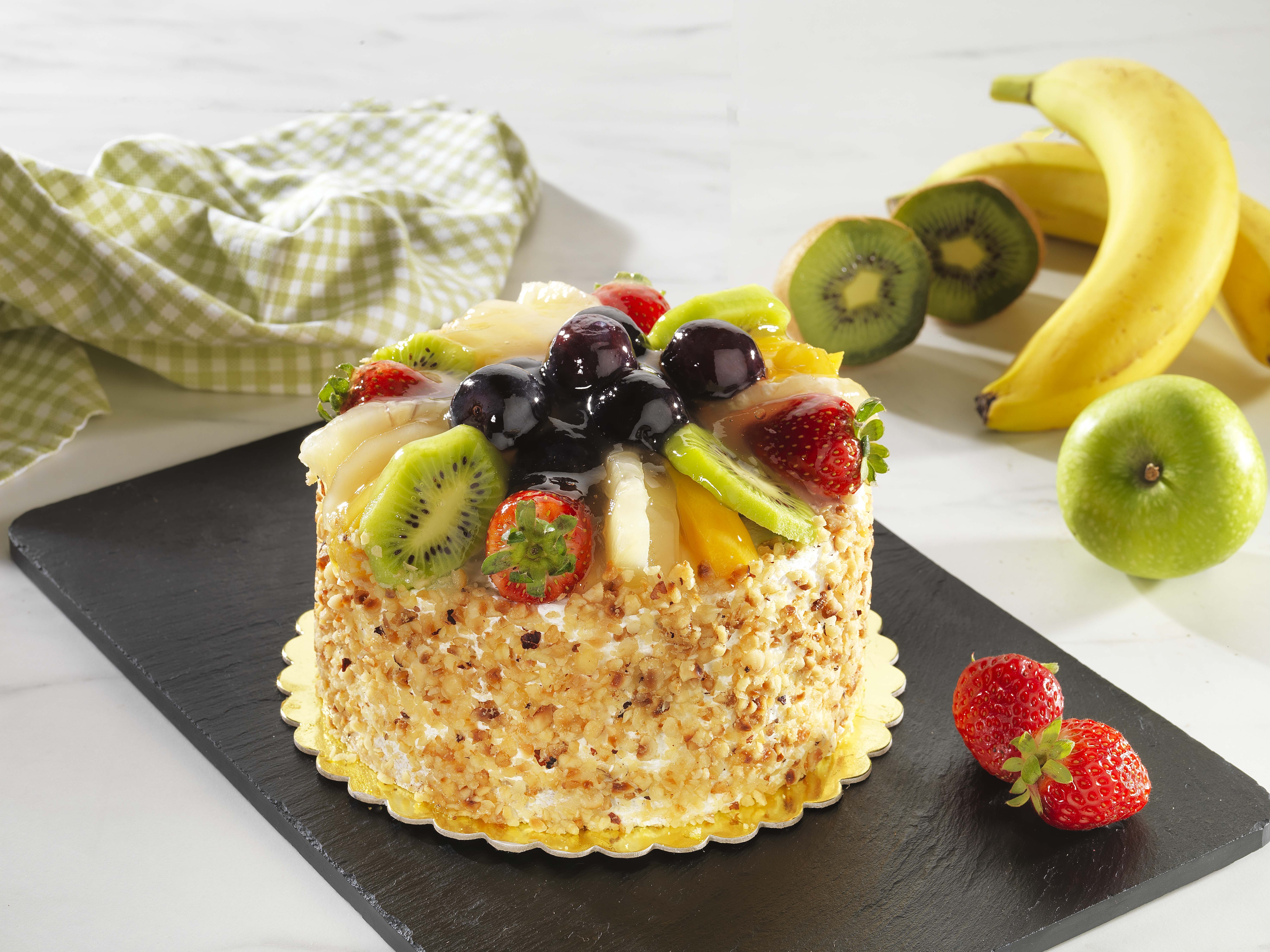 Taptaze çileklerin canlı kırmızısı ve muz dilimlerinin yumuşak dokusuyla süslenmiş bir meyveli pasta, zarif bir sunumun başrolü olur.